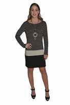 Frank Lyman Black & Beige Long Sleeve Dress- FL-43417