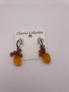 These elegant dangle earrings from the Classico Collection feature warm amber-style oval beads accented with clusters of red and bronze-toned faceted crystals. The earthy autumn-inspired colors create a rich, timeless look that pairs perfectly with both casual and dressy outfits. Lightweight and stylish, these earrings add a subtle yet eye-catching pop of color.
