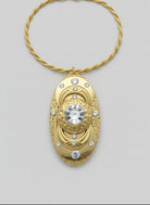 Majestic and luminous, the Golden Radiance Necklace by Jeff Lieb is a true work of wearable art. Handcrafted in the USA, this captivating piece features a layered golden centerpiece with hammered textures, sculptural arcs, and a brilliant central Swarovski crystal surrounded by smaller radiant accents.