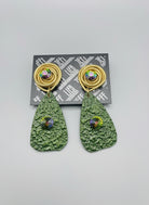 Vivid and eye-catching, these Green Textured Drop Earrings by Jeff Lieb showcase a masterful blend of color, form, and craftsmanship. Handcrafted in the USA, they feature gold-tone circular tops with authentic Swarovski crystals, paired with rich green textured drops accented by coordinating crystal details that shimmer with iridescent brilliance.