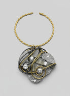 Sleek, dimensional, and endlessly captivating, the Interlace Necklace by Jeff Lieb fuses artistry and architecture into wearable sculpture. Handcrafted in the USA, this statement piece intertwines brushed silver, matte gold, and deep black metallic tones in an abstract composition of movement and form.
