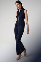 These versatile flare pants transition seamlessly from office to evening. Pair with the coordinating Joseph Ribkoff Lux Twill Fitted Vest With Front Zipper (Style 261054) for a complete designer ensemble, or style with a silk blouse and heels for sophisticated evening wear. The pull-on design makes them perfect for travel, while the wrinkle-resistant fabric maintains its polished appearance.
