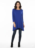Elevate your everyday style with this beautifully draped hi-lo tunic, designed for comfort, movement, and effortless sophistication. Crafted in Kozan’s signature soft stretch fabric, this top features a relaxed silhouette, a flattering scoop neckline, and 3/4 sleeves for year-round versatility.