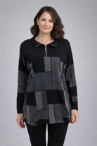 By JJ Ponte Zip Henley Patchwork Top- SS-118