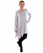 The Austin Tunic is the perfect combination of cute and comfortable! It features a wide rounded neckline with longer sleeves and an angled seam with rolled edges!