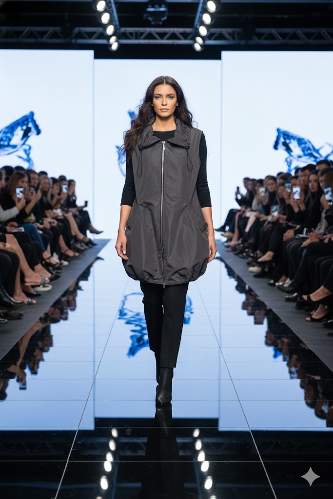 Sun Kim, a division of Comfy USA, is city chic, comfortable, packable travel wear. Each piece is water repellent and weather resistant. The exposed metal zipper and adjustable elastic band on the wide collar give this piece a edgy look. Rounded pockets which are cleverly hidden in the front seams. The August vest is a great layering piece to add to you wardrobe. 1X measures 48" bust, 35" length & 2X measures 50" bust, 36" length