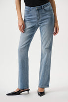 Crafted with Joseph Ribkoff's exclusive Feather weave™ stretch denim—a lightweight modal blend that's incredibly soft to the touch. The premium fabric composition ensures a fit that stands the test of time while maintaining star presence in any scene.