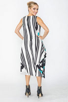 Elevate your wardrobe with this stunning IC Collection printed dress featuring sophisticated stripe detailing. Crafted from a luxurious blend of 92% rayon and 8% spandex, this designer dress offers the perfect combination of elegance and comfort.