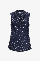 Joseph Ribkoff Signature | Recycled Satin Dot Print Sleeveless Cowl Neck Top-261746