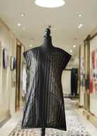 This sleeveless striped dress blends contemporary elegance with lightweight comfort. Designed in a desingner fabric with alternating matte and glossy vertical stripes, it creates a visually slimming effect while adding dimension and texture. The relaxed A-line silhouette drapes effortlessly over the body, and the subtle gathering at the hem gives it a gentle shape. Perfect for layering over a slip, leggings, or a fitted tee, this versatile piece transitions seamlessly from casual daytime looks to evening wear with the right accessories.