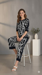 The eye-catching geometric abstract print creates a dynamic visual impact that sets you apart from the crowd. Frank Lyman's signature attention to detail shines through in every stitch, delivering a garment that's as beautifully constructed as it is stylish. The cropped wide-leg silhouette offers a flattering, elongating effect while providing exceptional freedom of movement.