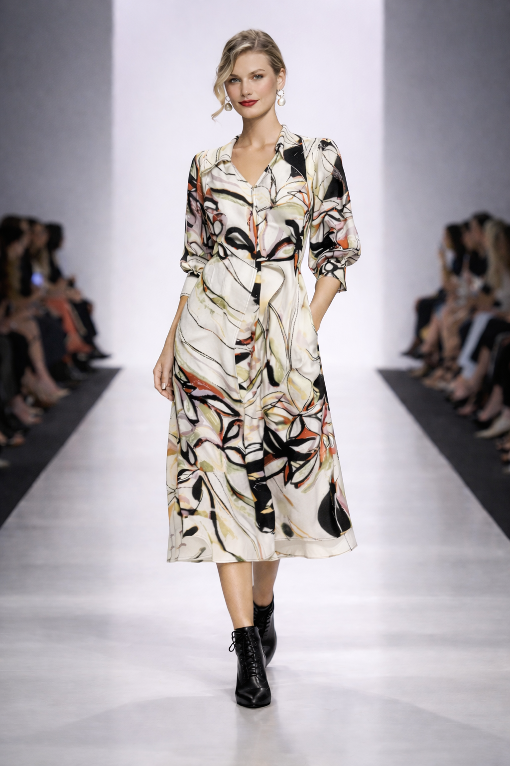 Make a statement with this effortlessly chic abstract print dress. Designed with a fluid silhouette and eye-catching artistic pattern, this dress blends comfort with modern sophistication. The lightweight fabric drapes beautifully, collar add a polished touch. Perfect for day-to-evening wear, travel, or special occasions.