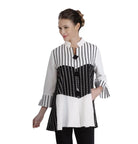 IC Collection Black and White Striped Jacket-IC-3040J