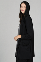 Effortlessly modern and endlessly versatile, this Stretch Jersey hooded jacket is the perfect layering piece for everyday wear. Designed with contrast mesh detailing for a lightweight, airy feel, it drapes beautifully while adding subtle texture and dimension. The relaxed open-front silhouette makes it easy to throw on over tunics or tanks, while the hood adds a casual, contemporary touch. Comfortable, breathable, and travel-friendly, this jacket transitions seamlessly from day to night.