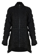 Crafted from softly crushed fabric, this Kozan jacket combines comfort with contemporary style. Designed with a versatile double-zip closure, roomy front pockets, and a cozy stand collar, it offers both function and flair. The flattering A-line silhouette is enhanced by subtle drop shoulders, full-length sleeves, and a chic high-low hemline for a modern finish.