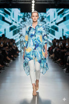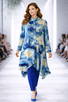 LINDI focuses on modern, fashionable garments that are easy to wear and easy to care for. This watercolor asymmetric piece combines beautiful design with practical features, making it perfect for travel, special occasions, or everyday wear. The artistic watercolor print creates a one-of-a-kind look while the asymmetric cut adds contemporary flair. Wear it as a jacket over your favorite dress or style it as a statement dress on its own.