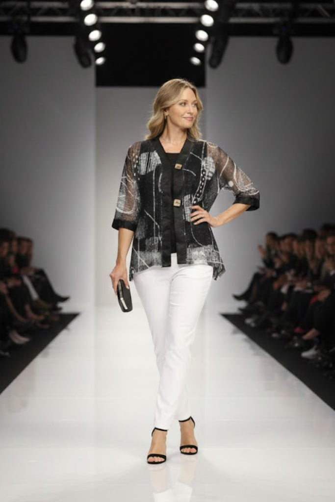 Perfect as a polished cover-up, this cardigan transitions seamlessly from day to evening—ideal over tanks, dresses, or coordinated sets. Crafted from a soft poly/cotton blend with breathable mesh accents, it delivers comfort, versatility, and modern elegance in one timeless layer.