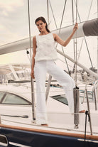 Charming and dimensional, this sleeveless straight top features a woven 3D floral texture, a clean boat neckline, and a sleek lined finish—perfect for adding subtle elegance to any look.Charming and dimensional, this sleeveless straight top features a woven 3D floral texture, a clean boat neckline, and a sleek lined finish—perfect for adding subtle elegance to any look.