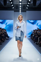 Crafted from lightweight Tencel, this woven striped blouse features a boxy silhouette and hidden button placket. All-over iron-on details add a unique touch to this casual, unlined piece.