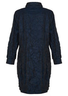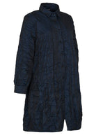 Elevate your outerwear with this sophisticated crinkle-textured jacket in a rich navy hue. Designed with an artful, crushed finish, this jacket brings depth and dimension to any ensemble. The flattering A-line silhouette drapes effortlessly over the body, while subtle pleating adds movement and modern flair. Finished with a dramatic collar and long sleeves, it’s the perfect layer for transitional weather. Whether worn open or buttoned up, this piece makes a bold, confident statement.