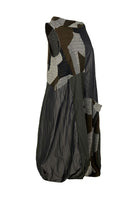 A sleeveless dress that can be styled casually or dressed up, featuring a mix of fabrics to create a unique, exclusive silhouette. It can be worn over a mesh or tee top for added layering, and also pairs well with leggings for versatile styling options.