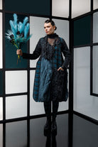 Crafted from crisp polyester with a sleek windbreaker texture, this stylish piece falls gracefully to the mid-shin, featuring an elasticized hemline for a flattering fit. The two-way zip front offers versatile styling options, while the stand-up mock neckline adds a modern, polished touch. Designed with full-length sleeves, a waist-defining seam, and a spacious front pocket, this garment combines effortless style with functional details. Perfect for one-step dressing that commands attention—shop now to elevate your wardrobe with this must-have piece.
