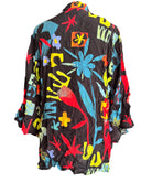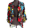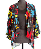 Crafted from a lightweight, crinkled fabric, this flowy jacket features a shorter open front that cascades to a longer length at the back. The gently flared three-quarter sleeves add a touch of elegance to its airy silhouette, making it an ideal choice for all year round and getaways or upcoming garden soirées.