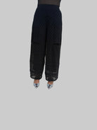 Breezy, bold, and effortlessly stylish these wide-leg sheer pants bring playful elegance to any outfit. Featuring a subtle all-over X-pattern design, the sheer overlay adds movement and texture, while the built-in shorts provide coverage and comfort. The elastic waistband ensures a flattering, flexible fit. Dress them up with heels and a blouse, or keep it casual with flats and a tank these pants are perfect for warm weather days or evenings out.