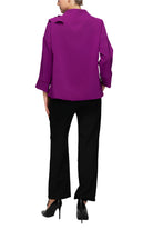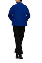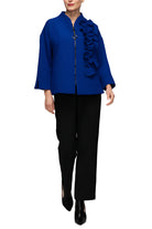 Make a sophisticated statement with the IC Collection Ruffle Trim Jacket. This tailored piece is elevated with soft ruffle detailing along the front placket, adding a touch of feminine flair to its structured silhouette. Featuring a sleek stand collar, front button closure, and three-quarter sleeves, it blends elegance with everyday versatility.
