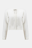 Joseph Ribkoff Feather Yarn Cardigan with Rhinestone Bow-254955