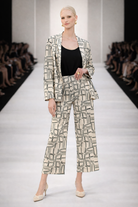 These wide leg pants are the ultimate wardrobe multitasker. Pair with a tucked-in blouse and heels for sophisticated office style, or dress them down with a fitted tee and flats for weekend elegance. The geometric print makes a statement on its own, so keep accessories minimal and let the pants be the focal point of your ensemble.