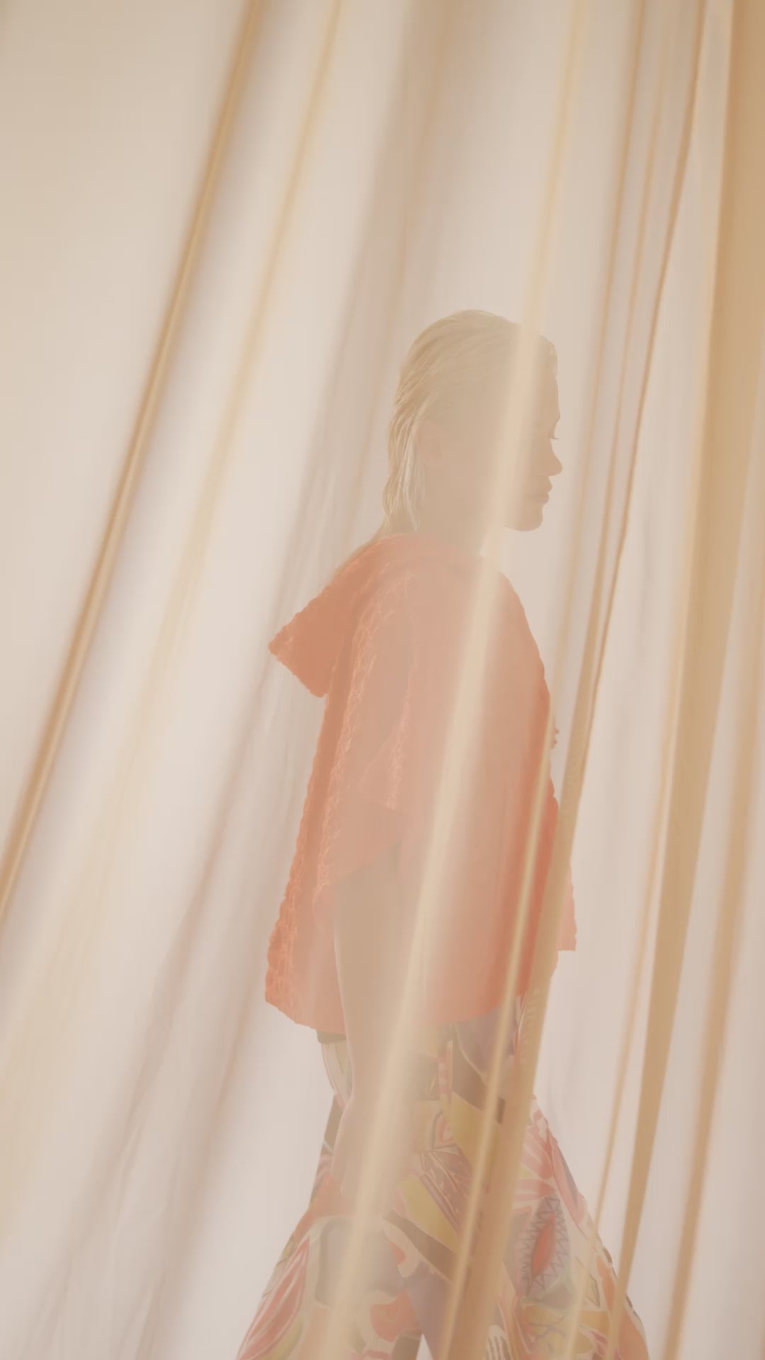 Designed in a vibrant orange crinkle fabric, this lightweight zip-front jacket features a relaxed, boxy silhouette that drapes comfortably while still making a statement. The short dolman sleeves and roomy hood add a playful, sporty touch, perfect for layering across seasons.