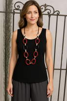 A sleeveless top featuring a soft U-shaped neckline and a smooth, fitted silhouette. The design is minimal and streamlined, creating a versatile piece that pairs easily with various bottoms and accessories. The fabric drapes neatly along the body, offering a polished and modern look.