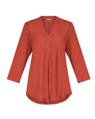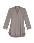 One of our best-selling tops! A figure-skimming silhouette that flares slightly at the waist for a peplum-inspired shape without the fanfare. Effortless pullover flatters all sizes and fits like a dream. V-neck, three-quarter sleeves and subtle hi-lo hemline.