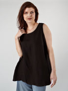 Effortlessly elegant and incredibly breathable, this soft linen tank is a warm-weather essential. Featuring an easy A-line silhouette and a flattering longer length, it offers comfort and coverage in one refined design.