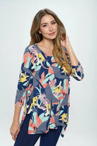 By JJ 3/4 Sleeve Retro Summer Print Top-IT-223P-A