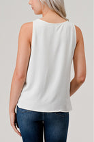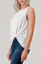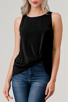| - Sleevelss - Round Neck - Off-side Twist Detail - Woven Wash in Cold Water Gentle Cycle, Do Not Bleach, Hang or Flat Dry, Do Not Tumble Dry. Made in USA 100% Polyester |