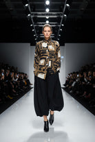 Make a statement with this artistic tunic featuring a striking geometric abstract print in earthy tones of brown, black, and ivory. Designed with an asymmetrical hemline and oversized statement buttons, this piece offers a modern, sophisticated flair. The relaxed silhouette and soft fabric provide all-day comfort and effortless style. Perfect for pairing with your favorite wide-leg or tapered pants.