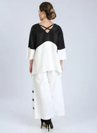 You can never go wrong with the classic black and white! This fashion forward tunic from IC Collection feature 3/4 length bell sleeves with a high-low hemline and half button front! (Broach not included)