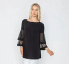 IC Collection Mesh Double Ruffle Sleeve Top-IC-5599T