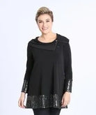 Features a sequence trim collar, long sleeves, open zip collar option, and pairs beautifully with matching pant.