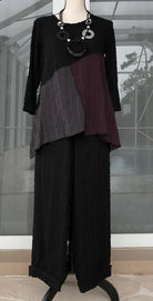 Tunic is sage, black and eggplant color block