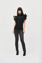 Joseph Ribkoff Chiffon Pleated Top With Ruffled Sleeves-JR-243957