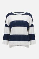Joseph Ribkoff Cotton Blend Stripe Print Crewneck Sweater-261635
