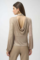 Joseph Ribkoff Foiled Knit Mock Neck Fitted Top-254027