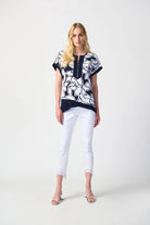 Joseph Ribkoff Leaf Print Woven Top With Knit Back-241032
