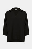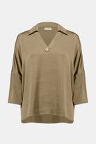Incorporate casual elegance into your everyday style with this lovely hammered satin top. The piece presents long dolman sleeves, a shirt collar and a V-neck with a statement button, all coordinated beautifully to lend this contemporary design a refined look.