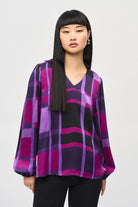 Joseph Ribkoff Satin Abstract Plaid Print Top-JR-243058