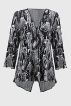 A masterpiece of contemporary fashion, this tunic exudes luxury and bold flair. The fascinating conversational print and sleek rhinestone zipper neckline add remarkable finesse to the design. The three-quarter sleeves with slit and back overlay detail complete the garment’s polished look.