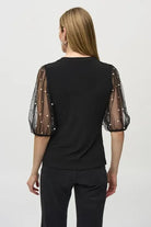Joseph Ribkoff Silky Knit Top With Embellished Mesh Sleeves-JR-244189